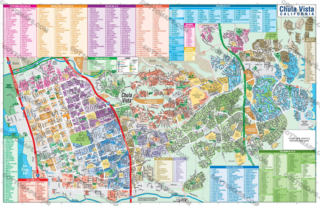 Chula Vista Map (3 options: Full, West & East), San Diego County